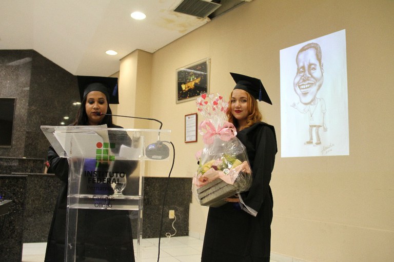 A diretora-geral do Campus Olinda, Luciana Padilha lembrou da consulta pública através da qual a população escolheu cursos nas áreas de artes, tecnologia e inovação e destacou a importância do momento. “Esta solenidade é um marco. Muitas outras virão depois dela”, comemorou. Já o diretor de ensino em exercício, Vassili Furtado, enfatizou o trabalho desenvolvido ao longo dos anos para que a primeira formatura acontecesse. “É gratificante ver os frutos de um grande trabalho. Vocês (estudantes) levarão do IFPE a marca profissional e humana”, disse.