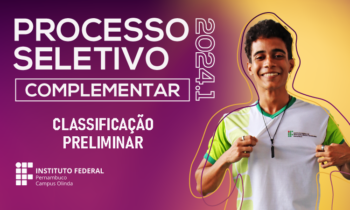 O IFPE Olinda divulgou o resultado preliminar de classificação do processo seletivo complementar 2024.1. Quem discordar da classificação pode apresentar recursos pelo e-mail ingresso@olinda.ifpe.edu.br