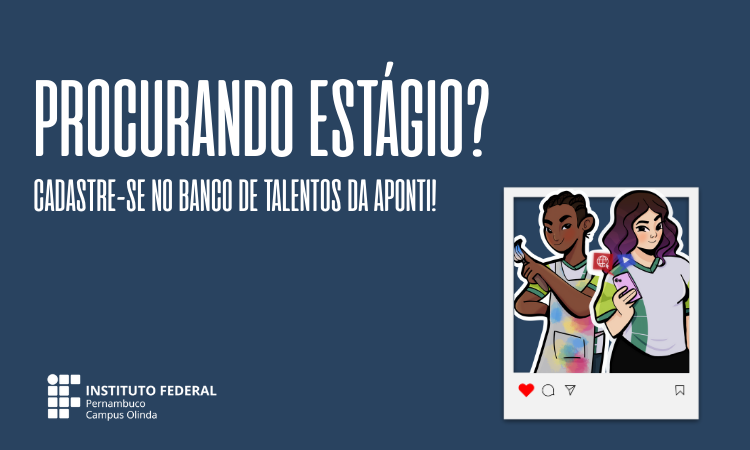 A Coordenação de Estágio do Instituto Federal de Educação, Ciência e Tecnologia de Pernambuco (IFPE) – Campus Olinda informa aos estudantes a oportunidade de cadastro no Banco de Talentos da APONTI, agente de integração com o qual o campus mantém contrato de concessão de estágio.