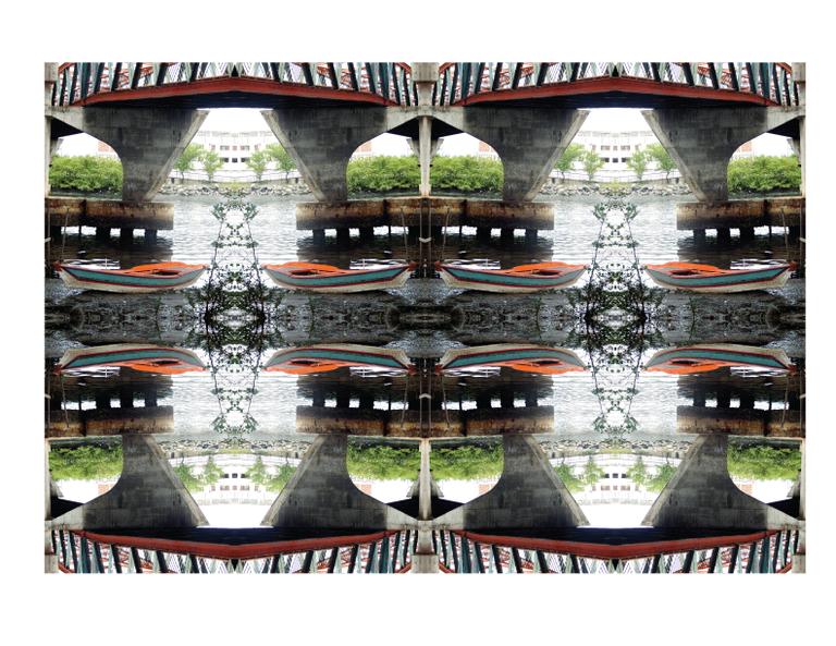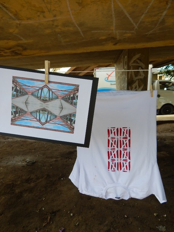 A primeira ação no espaço foram fotos debaixo da ponte, realizadas durante a disciplina de Fotografia, ministrada pela professora Luciana Padilha. Inspirados em Aloísio Magalhães, eles transformaram as imagens em cartemas – composições em mosaico, que utilizam a repetição para causar um efeito ótico. Da mesma forma que Magalhães, criador da prática, o objetivo era explorar a estética do espaço. Os cartemas logo viraram estampas, na disciplina Estamparia, ministrada pela professora Luciana Tavares.