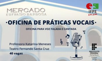 O coletivo IFPE Encena, projeto de extensão do Campus Olinda, abriu inscrições para a oficina Práticas de voz para a vida. O objetivo é levar conhecimento aos participantes, explorando todas as potencialidades da voz. Serão trabalhadas questões pertinentes à manutenção do trato vocal e sua saúde, o conhecimento sobre a higiene vocal e a prática do uso da voz.
