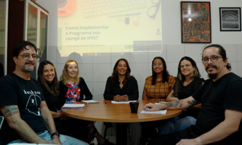 Nesta quinta-feira (5), o campus recebeu a visita da coordenadora pedagógica da Pró-Reitoria de Extensão (Proext), Márcia Girlene, e da servidora Glauciene Santana, que apresentaram os detalhes do programa à equipe gestora do IFPE Olinda.