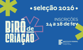O Campus Olinda do Instituto Federal de Educação, Ciência e Tecnologia de Pernambuco (IFPE) publicou, nesta terça-feira (24), o edital do Programa Birô de Criação 2026. A iniciativa tem como objetivo fortalecer o processo de ensino-aprendizagem por meio da prática profissional, com foco na criação e produção de mídias digitais para redes sociais, dando visibilidade às ações de Ensino, Pesquisa e Extensão desenvolvidas no campus.