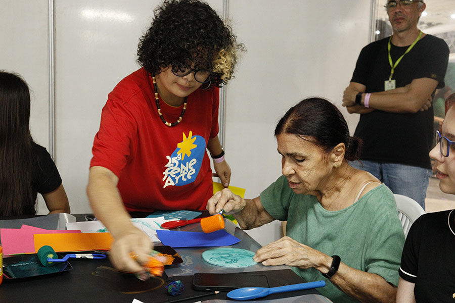 Inabi aproveita para dar um conselho a quem ainda está na formação: “Estejam atentos às oportunidades. Trabalhar junto com colegas fortalece. Essa oficina mesmo foi submetida por Tati, que me convidou. Juntos, fazemos mais. A Fenearte é uma vitrine que expande nossas possibilidades.”