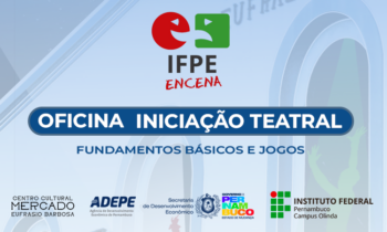 O IFPE Olinda, por meio do projeto Coletivo IFPE Encena, está com inscrições abertas para uma oficina gratuita de Iniciação Teatral. O objetivo é proporcionar conhecimentos básicos sobre a arte teatral, por meio de exercícios e jogos que ajudem no desenvolvimento da percepção dos elementos teatrais. Durante a vivência, também serão promovidas discussões sobre a História do Teatro.