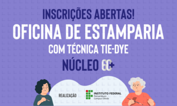 O Núcleo 60+ do IFPE Olinda oferecerá oficina de tie-dye para pessoas com mais de 60 anos. O objetivo é realizar experimentações por meio dessa técnica de estamparia para produção e de peças únicas, de forma divertida. São oferecidas 15 vagas que serão preenchidas por ordem de inscrição.