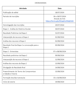 Para mais informações sobre a seleção para tutores de pares, confira o edital e o formulário de inscrição nos links abaixo: