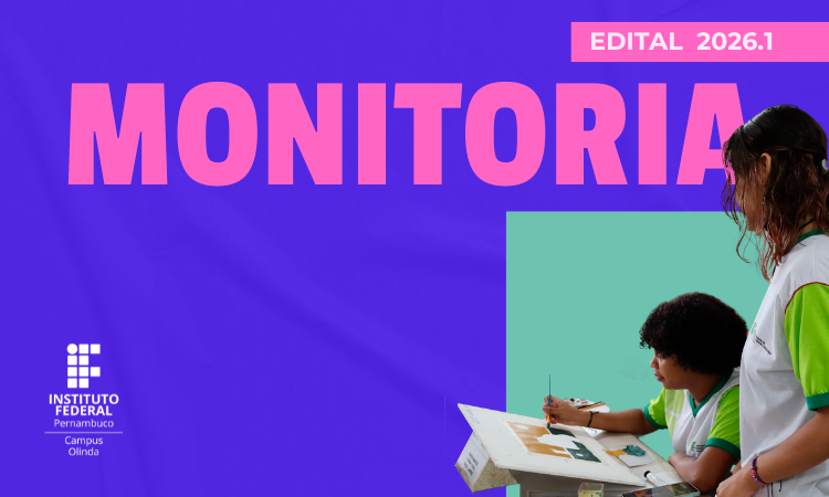 O Programa de Monitoria tem como objetivo geral possibilitar aos(às) estudantes dos cursos Superior em Produção Multimídia, Técnico em Artes Visuais (Subsequente), Técnico em Computação Gráfica (Subsequente) e Técnico Integrado em Computação Gráfica o desenvolvimento de atividades de ensino que contribuam para sua formação acadêmica, ampliando os espaços de aprendizagem e fortalecendo a qualidade do ensino ofertado no Campus Olinda.