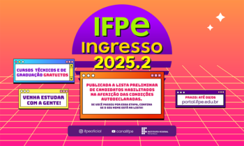 O Instituto Federal de Pernambuco (IFPE) divulgou nesta segunda-feira (30), a Lista Preliminar das Aferições de Condições Autodeclaradas, que são as comprovações dos/as candidatos/as que se declararam como Pretos, Pardos, Indígenas ou Quilombolas no momento da sua inscrição no Processo de Ingresso 2025.2.