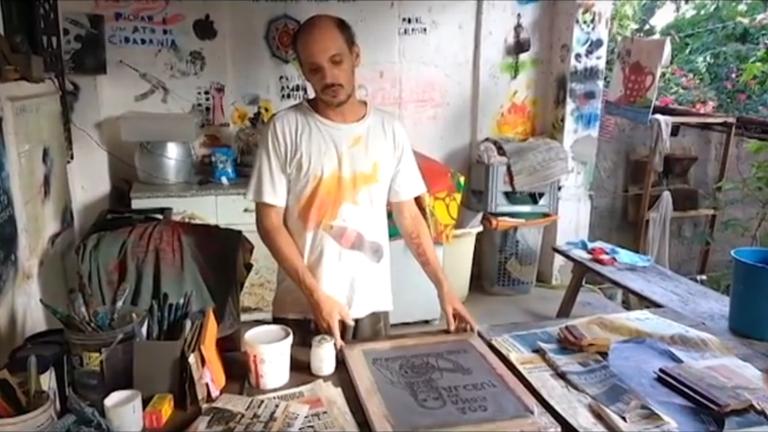 Outro vídeo selecionado é “Paulo do Amparo ensina técnica de serigrafia artesanal”, produzido pelos estudantes Anne Souza, Victor Hugo Borges, Pollyanna Ferro, Manú de Carvalho e Tábatha Brenda para a disciplina Estamparia, do curso de Artes Visuais. A ideia de produzi-lo surgiu no semestre passado, quando eles pesquisavam métodos artesanais de estamparia. “Além de ser um artista da terra, Paulo desenvolveu uma técnica muita alternativa de estamparia, reutilizando materiais. Neste semestre, inclusive, estamos relacionando a disciplina às práticas ambientais. O vídeo acaba reverberando o conhecimento produzido em sala de aula”, conta a professora e diretora de Ensino, Luciana Tavares.