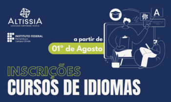 O projeto IFPE – ALTISSIA, plataforma virtual de ensino de línguas estrangeiras, abre inscrições de cursos de idiomas para servidores e estudantes do IFPE Olinda. Com duração de um ano, são ofertados os ensinos de Inglês (nas variações americano e britânico), Francês (nas variações canadense e europeu), Espanhol, Italiano, Alemão e Holandês. É possível realizar os seis curso, ao mesmo tempo.