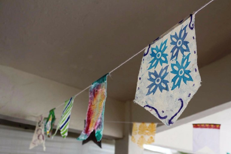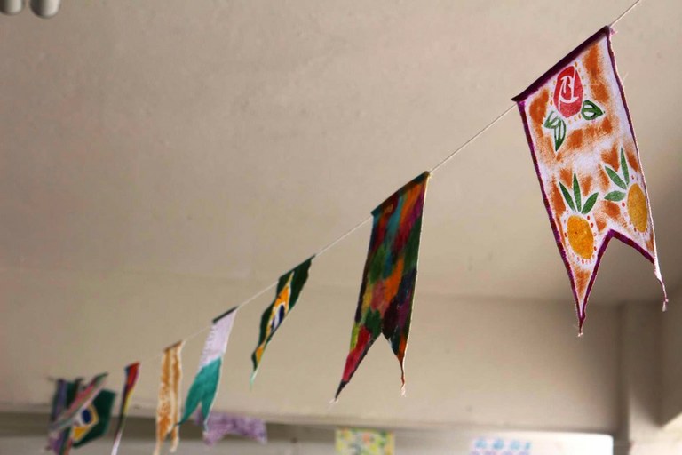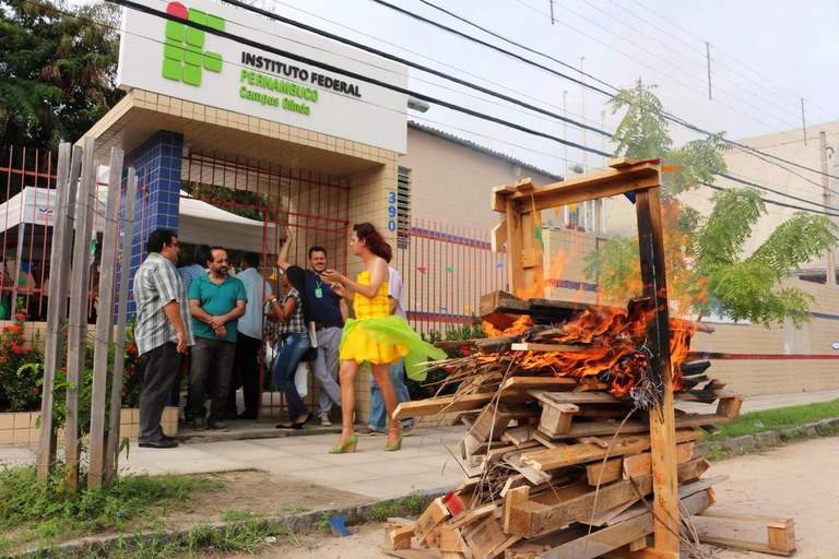 As tradicionais bandeirinhas foram confeccionadas em tecido pelos estudantes da disciplina de Estamparia, ministrada pela professora Luciana Tavares. A fogueira, feita com paletes que iriam para o lixo, queimou logo no início da festa, animada pelo forrozeiro Nerynho.