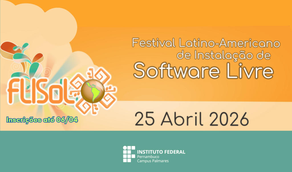 O IFPE Palmares abriu inscrições para as atividades locais do FLISoL (Festival Latino-Americano de Instalação de Software Livre), um evento que já se tornou tradicional em toda a região da Mata Sul. O evento é gratuito e as inscrições vão até o dia 06/04/2026.