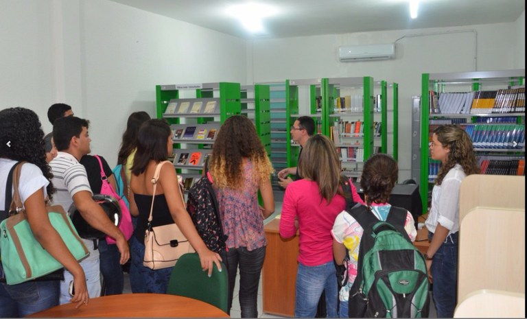 Após a apresentação cultural do grupo LiterAtos – do Campus Vitória de Santo Antão, e que recitou poemas do Modernismo –, os estudantes do 1º período dos cursos técnicos em Administração e em Manutenção e Suporte em Informática seguiram para uma visita guiada, onde receberam as principais informações sobre o funcionamento da biblioteca. “É muito importante, pois aqui podemos aprimorar os conhecimentos e ter contato com coisas novas, que vão além dos cursos”, afirmou o estudante Marcos André, do curso técnico em Administração.