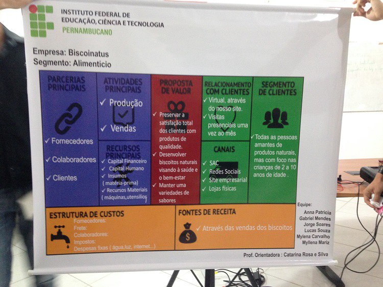 Estudantes do 1º período do Curso Técnico em Administração do Campus Paulista foram instigados a criarem ideias de negócios utilizando a Plataforma Canvas, uma ferramenta desenvolvida pelo Sebrae para estimular a criação e validação de modelos de negócios.
