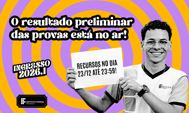 O Instituto Federal de Ciência e Tecnologia de Pernambuco divulgou nesta segunda-feira (22) o resultado preliminar das provas objetivas e dissertativa (redação) do Processo de Ingresso 2026.1.