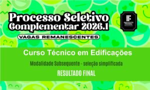 Saiu o resultado final da seleção complementar para o curso Técnico em Edificações