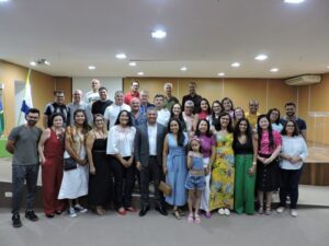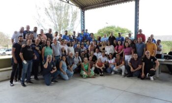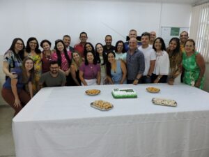 Durante todo o dia, diversas homenagens, programadas ou espontâneas, ecoaram junto com os cânticos de “Parabéns pra você”. Em um dos momentos de congratulação, colaboradores/as terceirizados/as e servidores/as se reuniram no pátio da cantina e posaram para uma fotografia histórica.