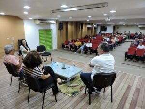 No início da celebração, servidores e servidoras mais antigos do Campus contaram um pouco de suas memórias ao longo de 20 a 30 anos de serviços prestados à comunidade acadêmica do IFPE Pesqueira. Falaram a professora Josineide Braz, e os técnicos-administrativos em Educação Décio Steve e Ronaldo Almeida.