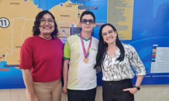 A solenidade ocorreu na Gerência Regional de Educação Sertão Moxotó Ipanema (GRE Arcoverde) e além do estudante, estiveram presentes a diretora-geral do Campus Pesqueira, Fabiana Júlia, e a diretora de Ensino, Bárbhara Nascimento. Em todo o Brasil, somente 100 participantes conquistaram medalha de ouro na disputa, que reuniu cerca de 18,3 milhões de estudantes de mais de 55 mil escolas públicas e privadas de todas as regiões.