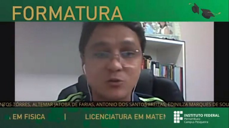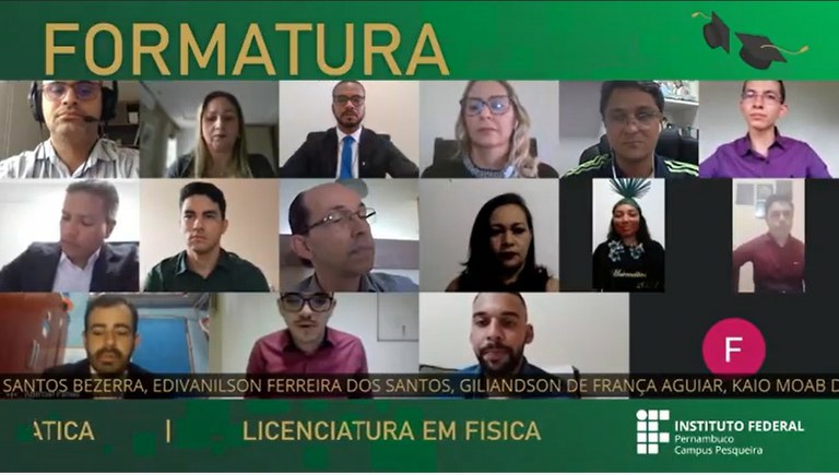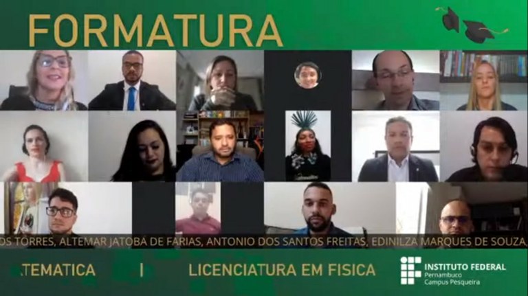 Transmitida ao vivo pelo Canal do IFPE Pesqueira no YouTube, a primeira Colação de Grau online dos cursos superiores de Licenciatura em Física e Licenciatura em Matemática do Campus Pesqueira do IFPE ocorreu na tarde da sexta-feira, 14 de maio. Embora tenham sido breves, os discursos referentes a ambas as turmas 2020.2 não economizaram na emoção, na gratidão e no reconhecimento dos gestores acadêmicos diante da vitória obtida pelos novos graduados e graduadas.