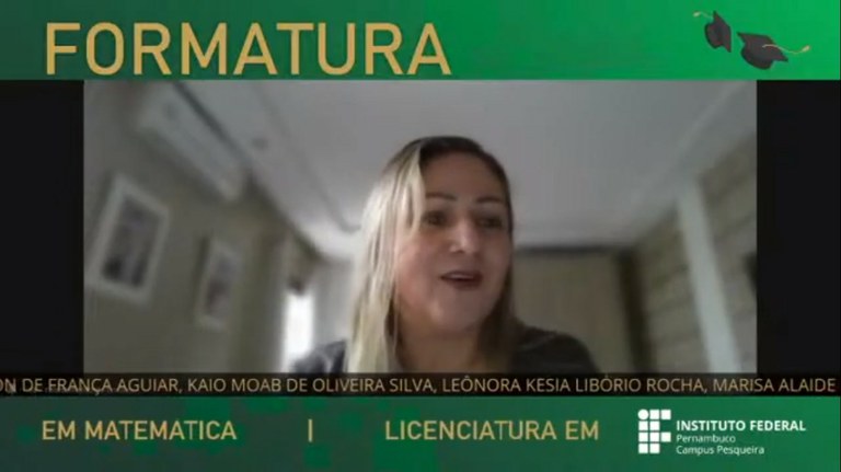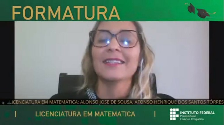 A diretora-geral em exercício, Anicélia Ferreira, primeiro prestou solidariedade a todas as pessoas que estão sendo direta ou indiretamente afetadas pela pandemia da Covid-19, para em seguida celebrar a alegria da conquista para formandos e formandas que atravessaram barreiras até que esse momento chegasse.