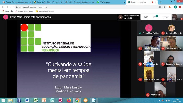 Por isso, para reforçar as medidas de prevenção ao coronavírus e apresentar formas de cuidar da saúde física e mental, a gestão do IFPE-Pesqueira realizou uma reunião virtual com os servidores terceirizados. Na oportunidade, o Diretor-Geral do campus, Valdemir Mariano, ressaltou a importância dos trabalhadores terceirizados para a instituição e tranquilizou os participantes com relação às medidas de segurança que estão sendo tomadas pelo IFPE-Pesqueira para preservar a saúde de todos.