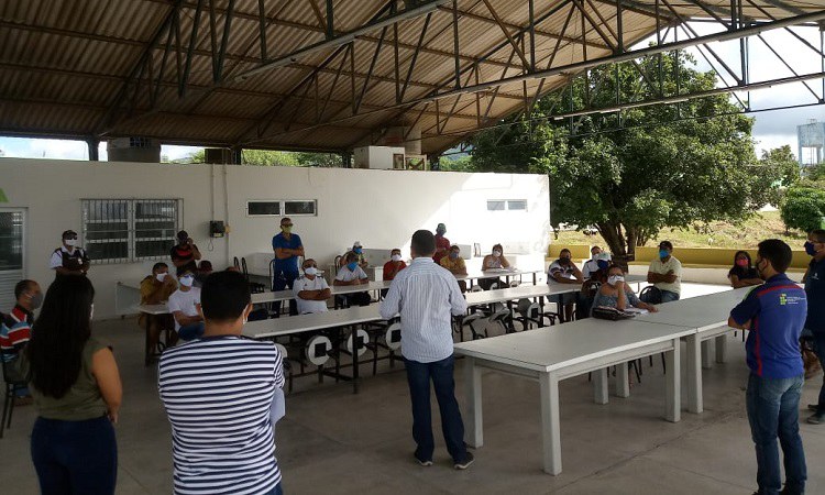 Cerca de 40 trabalhadores dos setores de manutenção, vigilância e serviços gerais passaram pelo treinamento. As instruções de prevenção ao novo coronavírus (SARS-Cov-2) foram feitas pelos professores do Curso de Enfermagem do IFPE-Pesqueira, Robervam Moura e Socorro Galindo. A atividade contou também com a participação do Coordenador de Serviços Gerais e Manutenção, Valter Leal, e do Diretor-Geral do campus, Valdemir Mariano.