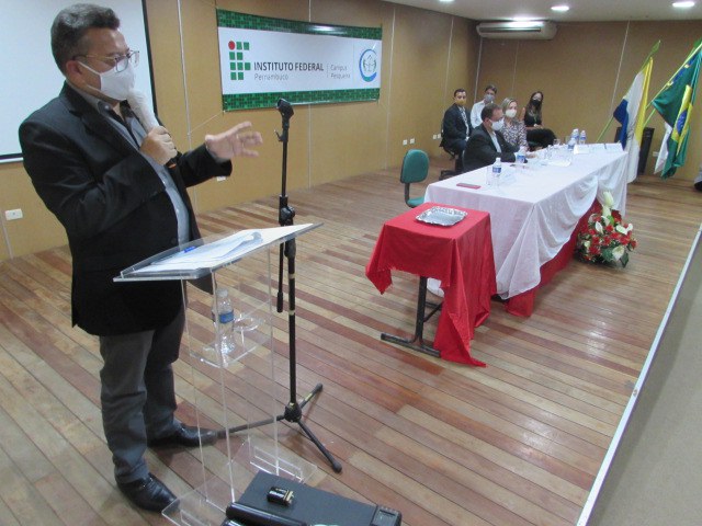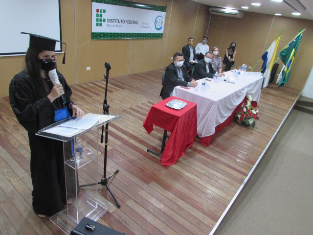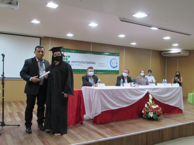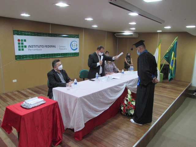 Durante a cerimônia, ocorrida no Auditório do Campus Pesqueira do IFPE, o reitor José Carlos de Sá foi representado pelo pró-reitor de Pesquisa, Pós-Graduação e Inovação do IFPE, Mário Monteiro, que também é professor do Campus Pesqueira e presidiu os trabalhos da Colação de Grau.