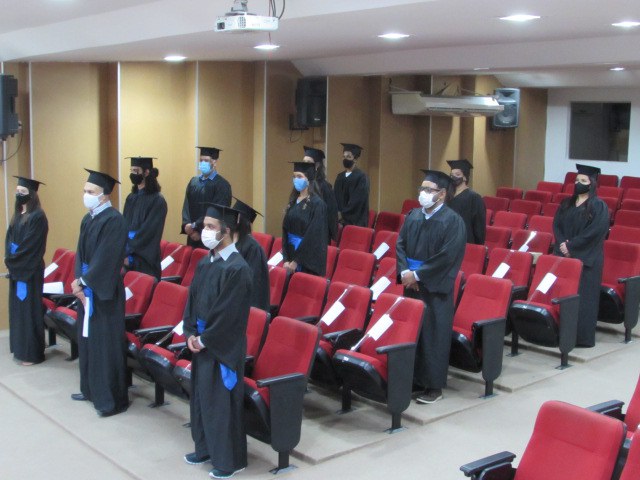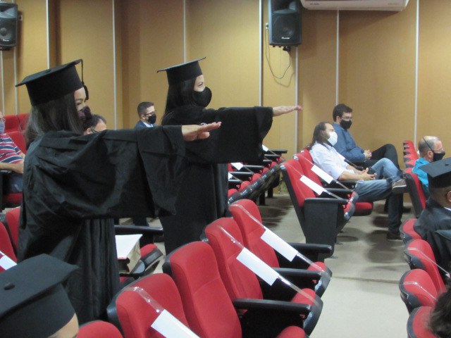 Realizada na tarde da terça-feira, 23 de fevereiro, a solenidade de Colação de Grau de formandos/as dos cursos superiores de Licenciatura em Física, Licenciatura em Matemática (turmas 2020.1) e Bacharelado em Enfermagem (turma 2020.2) do IFPE Campus Pesqueira teve restrições quanto à participação do público externo e contou com medidas de biossegurança necessárias neste momento de pandemia. No entanto, não faltaram os demais ingredientes que fazem desse momento um dos mais importantes na vida de uma pessoa e culmina com a esperada recompensa após quatro ou cinco anos de dedicação aos estudos de graduação.