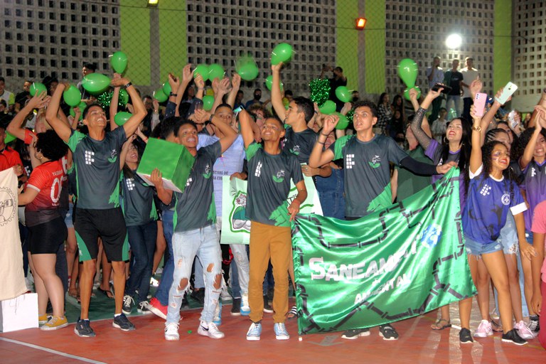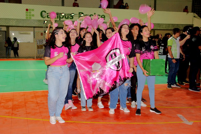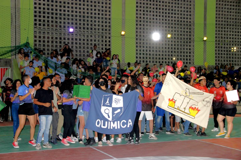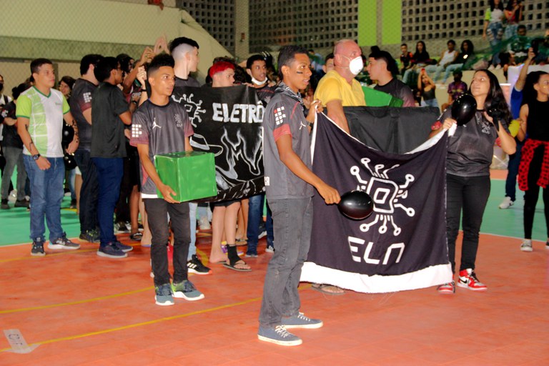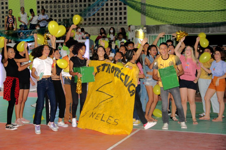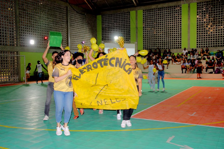 As delegações participantes, responsáveis por entradas empolgantes no ginásio, são dos cursos técnicos de Edificações, Eletrônica, Eletrotécnica, Mecânica, Química Industrial, Saneamento Ambiental e Segurança do Trabalho. Tamanho o entusiasmo dos estudantes que contagiou quem foi conferir de perto a solenidade, entre docentes, familiares, servidores, terceirizados e, especialmente, a mesa formada por representantes da gestão do Instituto e do corpo discente.