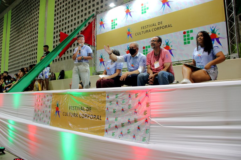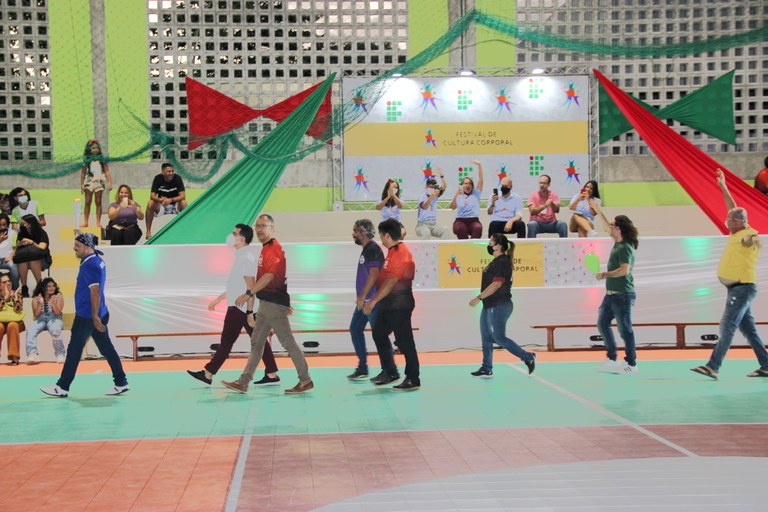 A solenidade contou com momentos marcantes, como a volta olímpica com a tocha conduzida pelos docentes padrinhos e professora madrinha das equipes, o juramento dos participantes a ressaltarem o compromisso com o espírito esportivo e o senso de equipe, além das apresentações culturais. A professora Carol Bello, representante da Reitoria, fez questão de destacar, na ocasião, a importância do momento de união e descontração em face do contexto recente. “Esse evento transborda tudo de que o País está precisando. A Educação transforma! As/os estudantes como resultado do que de melhor a Instituição pode trazer”!, complementou. A diretora de Assistência Estudantil, Nathália da Mata, ressaltou o caráter inclusivo do esporte e seu potencial para o jogo de transformação. O diretor do Campus, Marivaldo Rosas, incentivou as/os discentes a levarem para o decorrer do festival a alegria testemunhada durante a abertura.