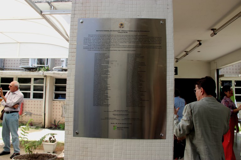 O Memorial de Mecânica foi organizado em homenagem aos/às profissionais que, ao longo dos 113 anos de história da Instituição, contribuíram com sua dedicação e trabalho, para a atual conquista do conceito máximo (nota 5) pelo MEC/INEP do curso hoje de Bacharelado em Engenharia Mecânica. Participaram da solenidade o ex-prefeito João da Costa, professor Jairo Brito, professor Felipe González, coordenador do curso de Engenharia Mecânica da Unidade do Cabo da UFRPE representando a reitoria da Universidade, além do reitor do Instituto, José Carlos de Sá, do diretor do IFPE Barreiros, Adalberto Arruda e outros integrantes do IFPE.