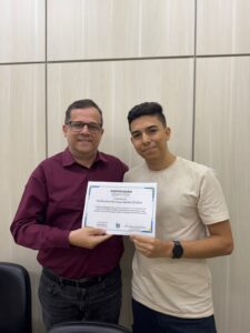 Na última sexta-feira (14/11), ocorreu a cerimônia de entrega do certificado de Estudante Destaque para o concluinte e laureado no curso de Tecnologia em Análise e Desenvolvimento de Sistemas, Guilherme Oliveira. O prêmio foi concedido pela Sociedade Brasileira de Computação (SBC).