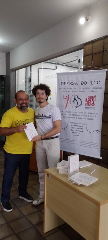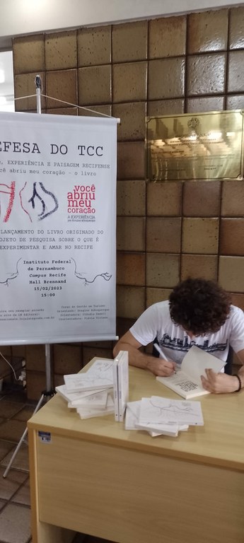 Olhares, vivências e sentimentos que expressam a paixão pela cidade do Recife. É o que reúne o livro “Você Abriu Meu Coração – A Experiência”, de autoria do estudante de Gestão de Turismo do IFPE Campus Recife, Douglas Albuquerque. A obra é fruto do Trabalho de Conclusão de Curso (TCC), orientado pela professora Cláudia Sansil, e teve seu lançamento juntamente com a defesa do trabalho, no último dia 15 de fevereiro, no hall de entrada do campus.