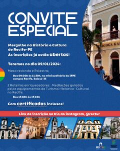 Turma de 3º período do curso de Gestão de Turismo do IFPE Recife vai promover, no dia 09/01, o Rectur, evento que explora segmento histórico-cultural do setor, com foco na capital pernambucana.