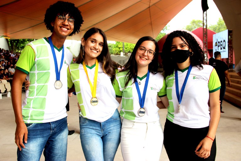O mês de dezembro começou especialmente animado para nove estudantes do IFPE Recife que receberam na tarde de quinta-feira (01/12) as premiações pela participação na Olimpíada Pernambucana de Química (OPEQ 2022). A cerimônia foi realizada na Concha Acústica da UFPE, que contou com a presença de discentes e professoras/es de diferentes instituições de ensino do Estado. Do IFPE, prestigiaram os/as discentes o diretor-geral do Campus Recife, Marivaldo Rosas, e o professor na área Robson Barros, presidente da Comissão de Preparação do campus para a OPEQ.