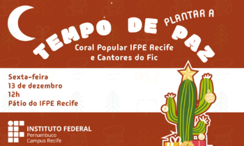 O Coral Popular e os cantores do curso FIC de Música do IFPE Recife promovem no dia 13 de dezembro, às 12h, no pátio, o evento musical natalino “Tempo de plantar a paz”.