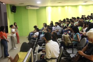 O evento contou com a participação da psicóloga Sandra Roberta, adepta da Terapia Cognitiva Comportamental (TCC). A facilitadora ministrou a palestra de abertura “Estudo, saúde mental e bem-estar”, abordando os desafios em termos emocionais da comunidade discente na vida acadêmica, a exemplo da ansiedade no contexto de provas e cobranças em período de processos seletivos. “A ansiedade atrapalha; ela paralisa”, alertou a profissional.