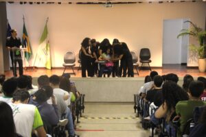 Em um primeiro momento, as psicólogas do campus Christiane Oliveira e Daniela Torres, o diretor-geral, Fábio Nicácio, e a diretora de Ensino, Maria Clara Catanho, saudaram os/as estudantes presentes no auditório. Eles acompanharam a apresentação teatral de grupo do Núcleo de Arte e Cultura (NAC) do campus, que retratou, em peça, diferentes situações nas quais o/a discente se vê convivendo com a ansiedade no ambiente acadêmico.
