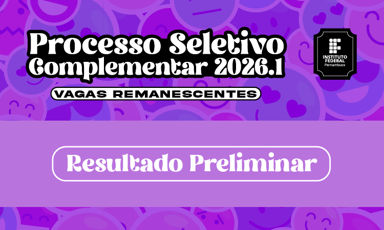 O IFPE Recife divulgou, nesta quarta feira (01), ra publicação, os resultados preliminares dos Processos Seletivos Complementares para preenchimento de vagas remanescentes do ingresso 2026,1