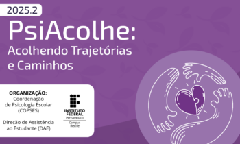 No dia 02 de outubro, o IFPE Recife vai realizar o Evento Psi Acolhe, organizado em parceria pela Direção de Assistência ao Estudante (DAE) e pela Coordenação de Psicologia Escolar (COPSES).