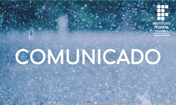 O IFPE Recife comunica que, devido às intensas chuvas que atingem a Região Metropolitana do Recife, estão suspensas, nesta terça-feira (07/04), as atividades acadêmicas e administrativas presenciais em todos os turnos (manhã, tarde e noite).