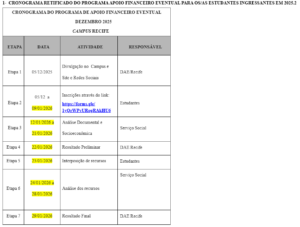 Os/as estudantes que solicitaram o auxílio entre os dias 05/12 e 12/12 sem a autodeclaração de renda familiar receberão um e-mail da equipe de Serviço Social para encaminharem o documento, devidamente preenchido e assinado, até o dia 09 de janeiro de 2026, que é o prazo final para solicitação do apoio financeiro eventual.