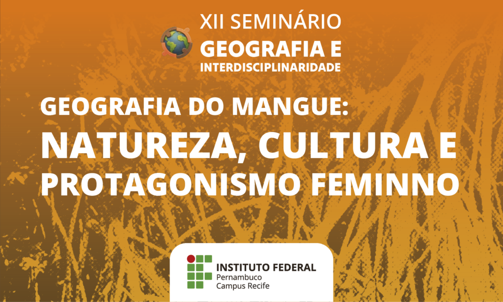O 12º Seminário Interdisciplinar: Geografia do Mangue: natureza, cultura e protagonismo feminino acontecerá nos dias 23 e 24 de fevereiro. A atividade é organizada pela turma do 8º período do curso de Licenciatura em Geografia do IFPE Recife, no âmbito da disciplina “Projetos Interdisciplinares”, ministrada pelos docentes Clézia Braga e Maciel Henrique Silva.