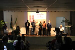 O corpo docente do campus prestigiou apresentação cultural de colegas que compõem turma de canto conduzida pela professora Lucivanda Silva. A comunidade presente aplaudiu a performance “Microfone em Cena: um panorama da música brasileira a partir da era do rádio”.
