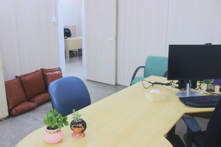 De duas, o setor da Psicologia passou a contar, além da recepção, com quatro salas, sendo três para a realização de atendimentos individuais e uma, mais ampla, para a prestação do serviço individual ou ações em grupo e mesmo reuniões. Além da obtenção de equipamentos de ar-condicionado, uma aquisição importante foi a de divisórias acústicas, instaladas em todo o espaço. As melhorias no espaço físico permitem um maior número de atendimentos simultâneos em salas individuais, como também incremento na qualidade do serviço oferecido, tendo em vista a acomodação da acústica, com espaço de fala mais confortável e a preservação do sigilo para se exporem as demandas psicológicas.