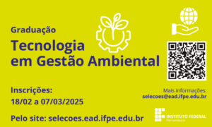 A inscrição será realizada no período de 22 de julho a 08 de agosto. São ofertadas 150 vagas, distribuídas em seis polos EaD
