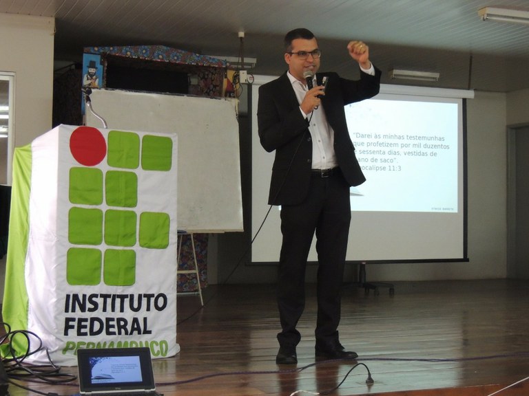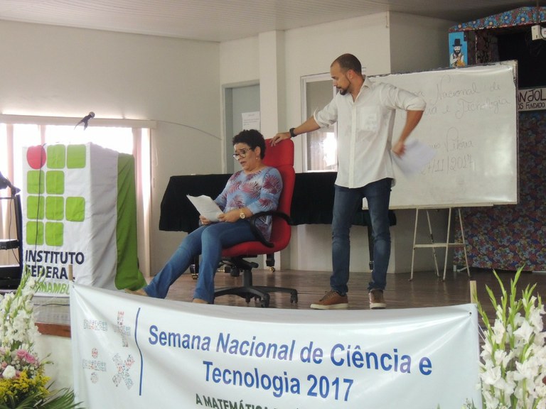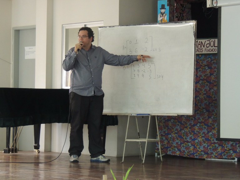 Os(as) participantes assistiram à apresentação teatral “A matemática está em tudo, até no divã”, interpretada por Verônica Rodrigues (Campus Cabo) e Daniel Alcântara (Colégio Militar do Recife). Em seguida, o professor Tiago Dias (UFRPE) proferiu a palestra “A Teoria da Matriz está em tudo”, que foi seguida pela apresentação do teólogo Otávio Barreto sobre “Os cálculos matemáticos nas profecias bíblicas”.