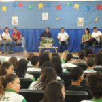 O egresso do Campus Vitória e hoje professor do IFAM, Tiago Edvaldo, contou sua história e falou da importância da educação pública para a transformação das pessoas e da sociedade. “O IFPE Campus Vitória não é tijolo, cimento, estrutura. O IFPE Campus Vitória são as pessoas, e são essas pessoas que nos salvam no dia a dia”, disse.